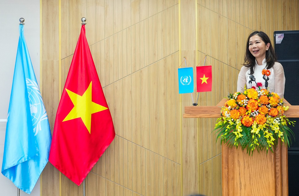 Bà Madame Pauline Tamesis - Điều phối viên Liên hợp quốc tại Việt Nam phát biểu tại buổi Lễ.