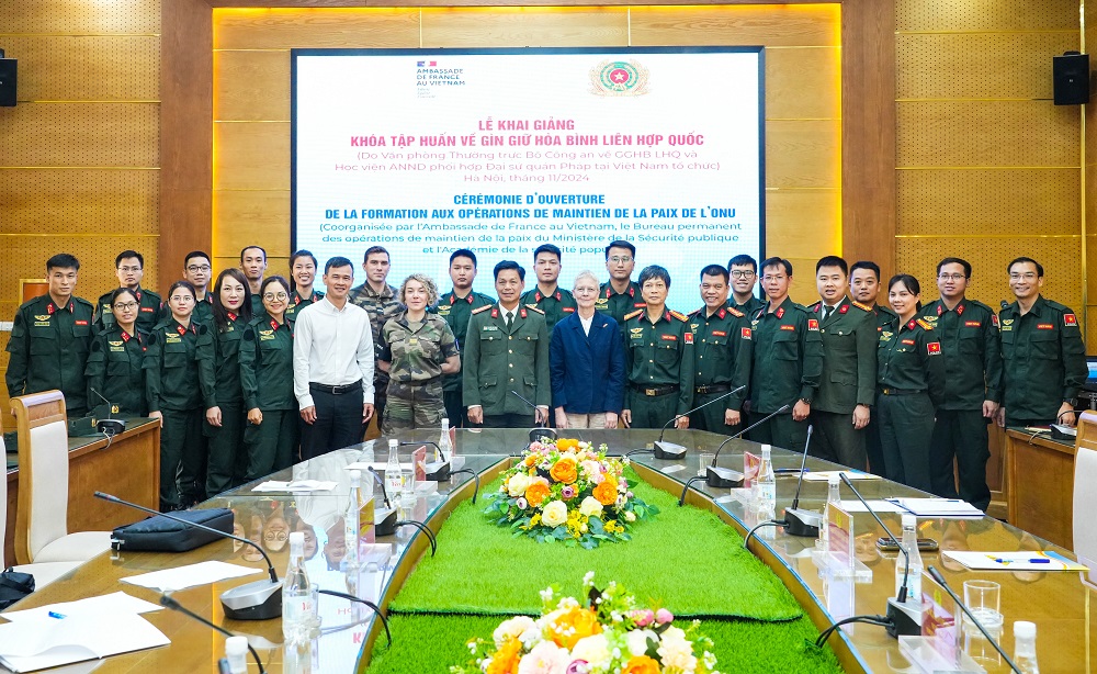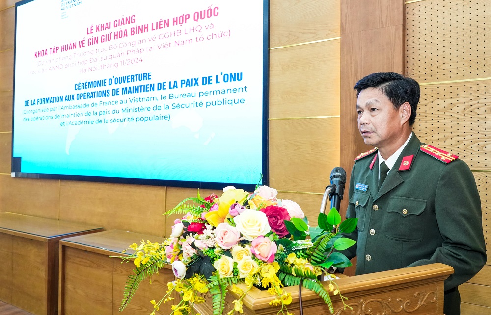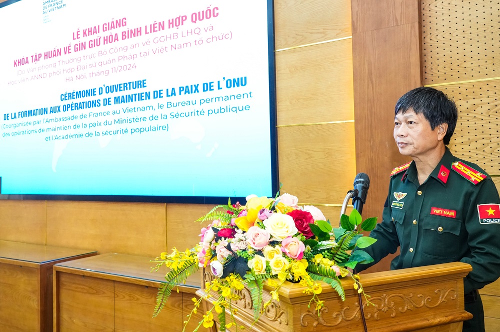 Sáng 18/11/2024, tại Hà Nội, Văn phòng Thường trực Bộ Công an về gìn giữ hòa bình Liên hợp quốc (GGHB LHQ) và Học viện An ninh nhân dân phối hợp với Đại sứ quán Pháp tại Hà Nội tổ chức Lễ khai giảng khóa tập huấn về GGHB LHQ.