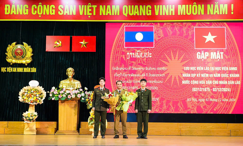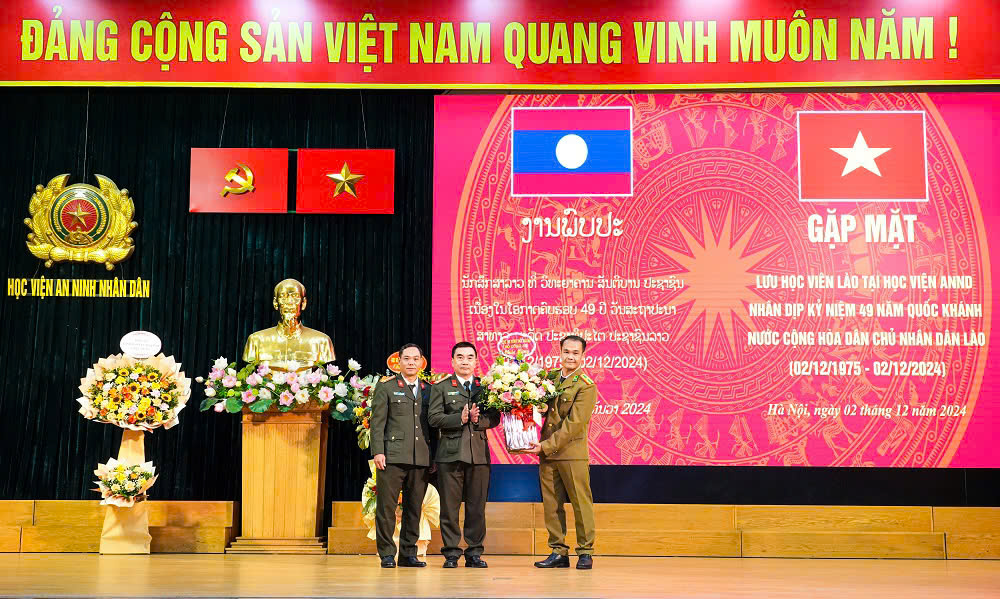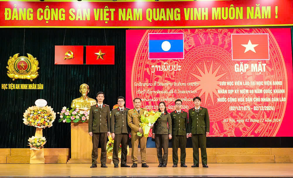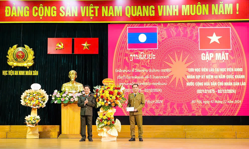 Ngày 02/12/2024, Học viện An ninh nhân dân (ANND) đã long trọng tổ chức buổi gặp mặt, chúc mừng lưu học viên Lào nhân dịp kỷ niệm 49 năm Ngày Quốc khánh nước Cộng hoà Dân chủ nhân dân Lào (02/12/1975 - 02/12/2024). TS, Đại tá Nguyễn Văn Thiết - Phó Giám đốc Học viện chủ trì buổi gặp mặt.