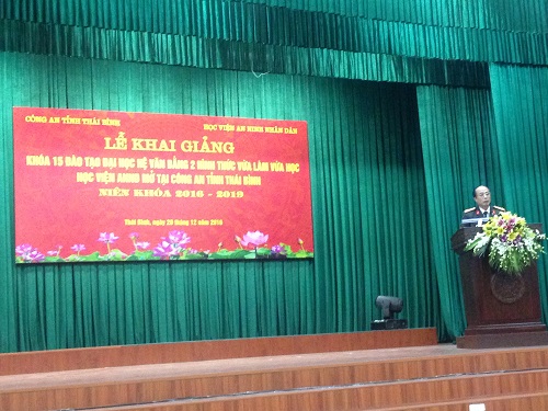 Ngày 20/12/2016, Học viện An ninh nhân dân tổ chức khai giảng Khóa 15 đào tạo đại học hệ Văn bằng 2 hình thức vừa làm vừa học mở tại Công an tỉnh Thái Bình.