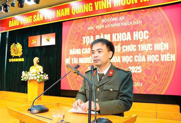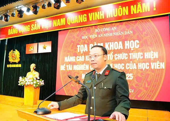 Ngày 03/12/2024, Học viện An ninh nhân dân tổ chức Tọa đàm khoa học “Nâng cao hiệu quả tổ chức thực hiện đề tài nghiên cứu khoa học của học viên năm học 2024 - 2025”. Được sự ủy quyền của Ban Giám đốc Học viện, PGS.TS, Đại tá Phan Bá Toản - Trưởng phòng Quản lý nghiên cứu khoa học chủ trì buổi Tọa đàm.