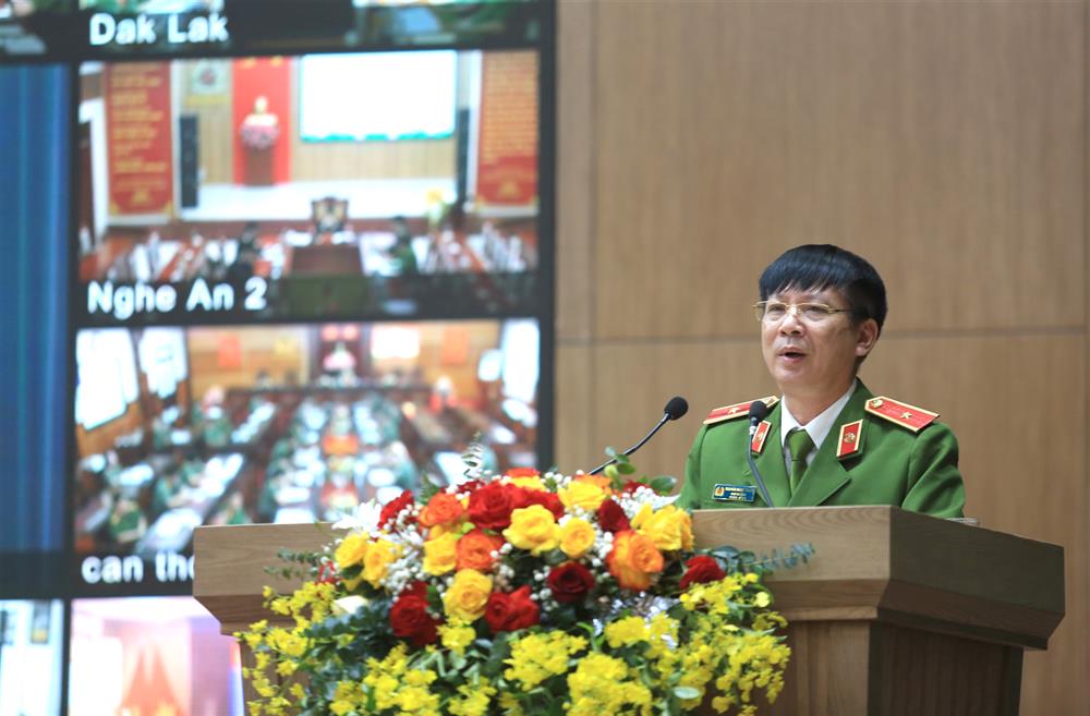 Dự Hội nghị có đại diện lãnh đạo các đơn vị thuộc Bộ… Hội nghị được trực tuyến từ Hội trường Bộ Công an (Hà Nội) đến điểm đầu Công an các tỉnh, thành phố trực thuộc Trung ương và Công an cấp huyện.