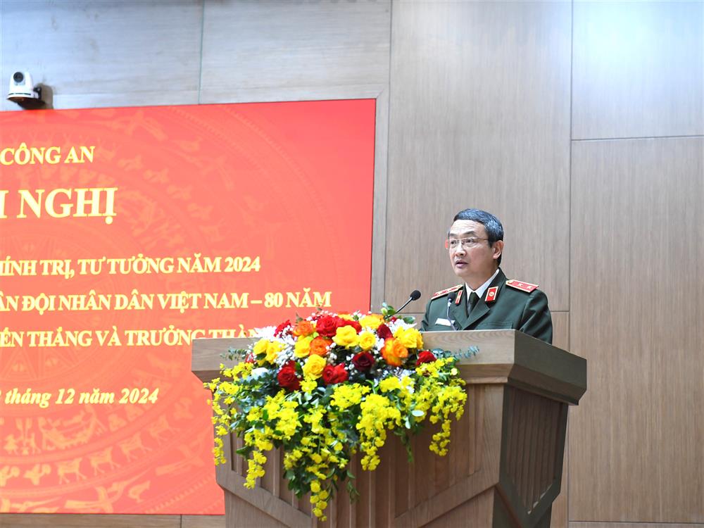 Thay mặt Đảng ủy Công an Trung ương, lãnh đạo Bộ Công an, Thứ trưởng Trần Quốc Tỏ đánh giá cao, ghi nhận và biểu dương những thành tích, kết quả nổi bật về công tác chính trị, tư tưởng mà Công an các đơn vị, địa phương đã nỗ lực phấn đấu đạt được trong năm 2024.