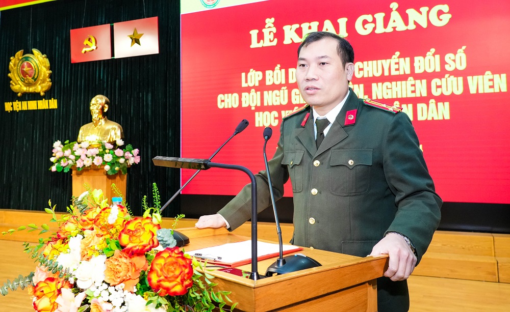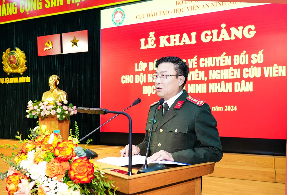 Phát biểu tại Lễ khai giảng, TS, Đại tá Nguyễn Anh Tuấn - Phó Cục trưởng Cục Đào tạo, Bộ Công an khẳng định, cùng với tinh gọn bộ máy hiệu năng, hiệu quả thì vấn đề chuyển đổi số đang được cả hệ thống chính trị và xã hội quan tâm. Mới đây, tại Lễ Gặp mặt đại diện nhà giáo, cán bộ quản lý giáo dục nhân ngày Nhà Giáo giáo Việt Nam 20/11, đồng chí Tổng Bí thư Tô Lâm đã phát động thực hiện phong trào “Bình dân học vụ số”…để thực hiện thành công Nghị quyết về chuyển đổi số, đồng chí Tổng Bí thư đã yêu cầu nhanh chóng phổ cập tri thức cơ bản chuyển đổi số cho toàn dân.