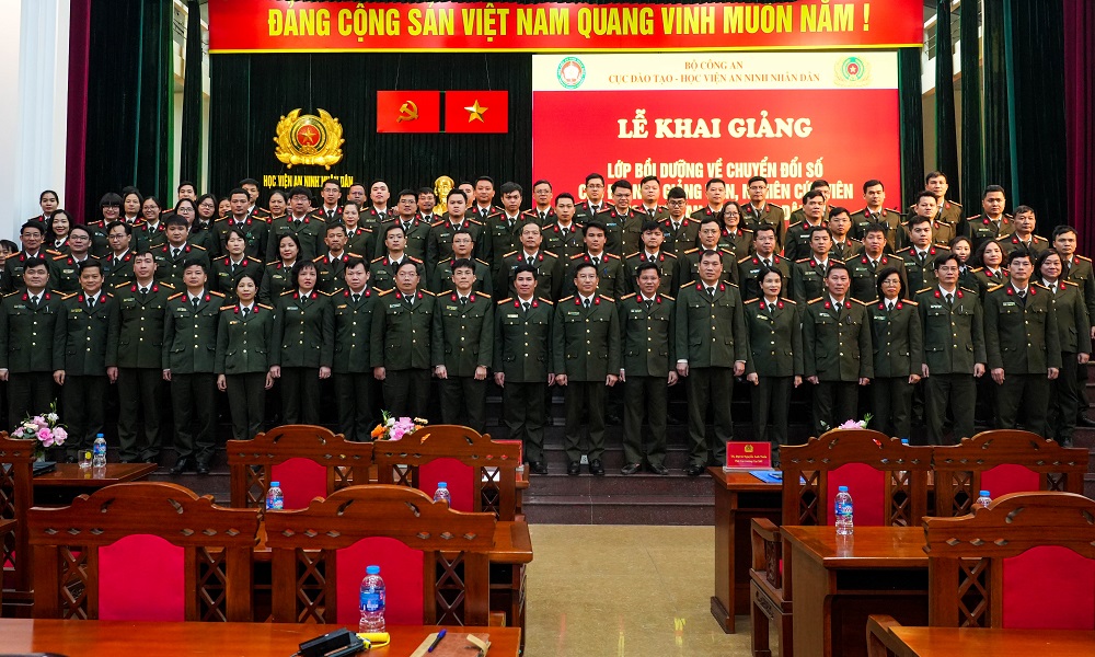Thực hiện Kế hoạch số 234/KH-BCA-V01, ngày 04/5/2024 của Bộ Công an về triển khai Quyết định số 146/QĐ-TTg, ngày 28/01/2024 của Thủ tướng Chính phủ, ngày 17/12/2024, Học viện ANND phối hợp Cục Đào tạo - Bộ Công an tổ chức khai giảng lớp “Bồi dưỡng về chuyển đổi số cho đội ngũ giảng viên, nghiên cứu viên của Học viện An ninh nhân dân”.