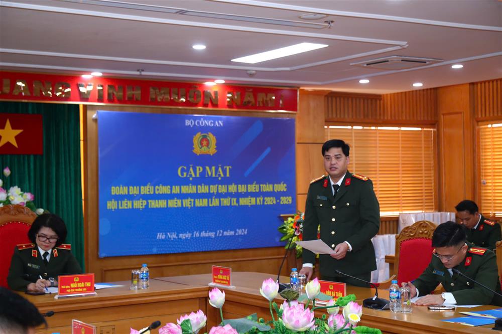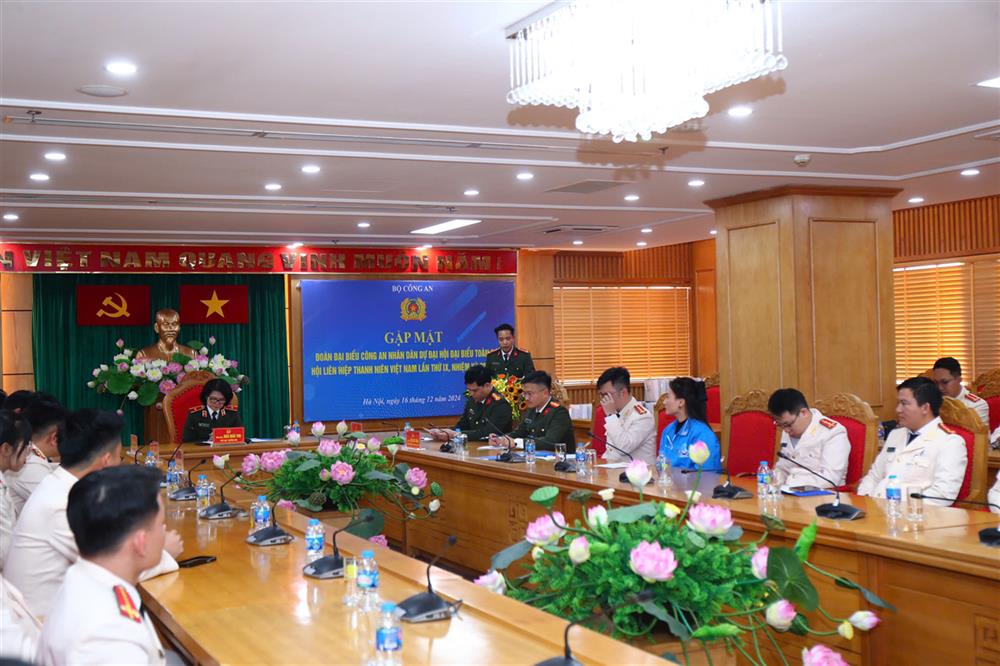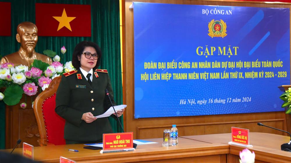 Chiều 16/12/2024, tại Hà Nội, Thiếu tướng Ngô Hoài Thu, Phó Cục trưởng Cục Công tác Đảng và công tác chính trị chủ trì buổi gặp mặt, giao nhiệm vụ cho đoàn đại biểu Công an nhân dân (CAND) tham dự Đại hội đại biểu toàn quốc Hội Liên hiệp thanh niên (LHTN) Việt Nam lần thứ IX, nhiệm kỳ 2024 – 2029.