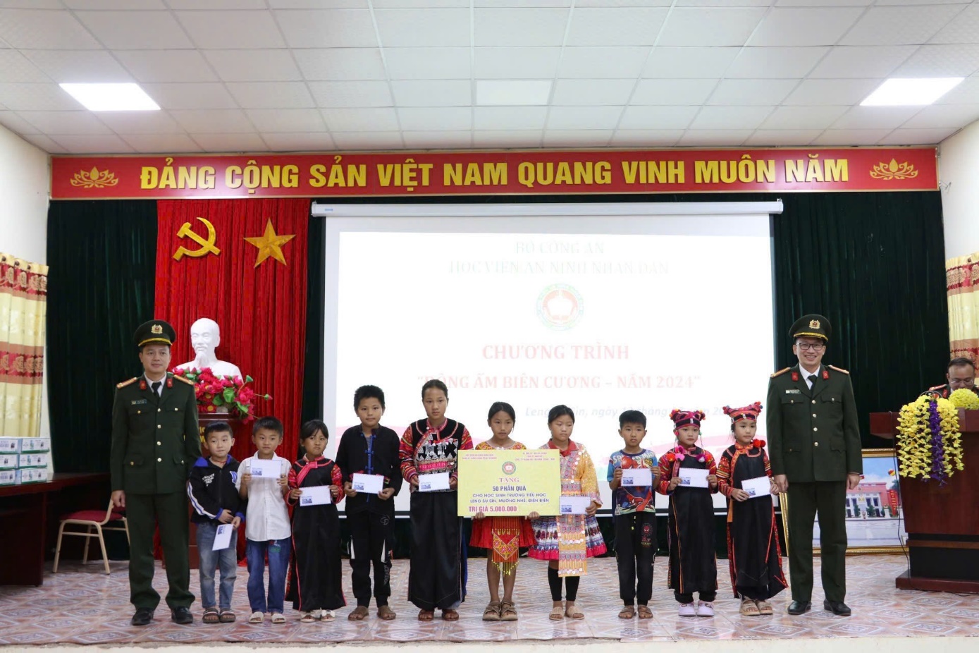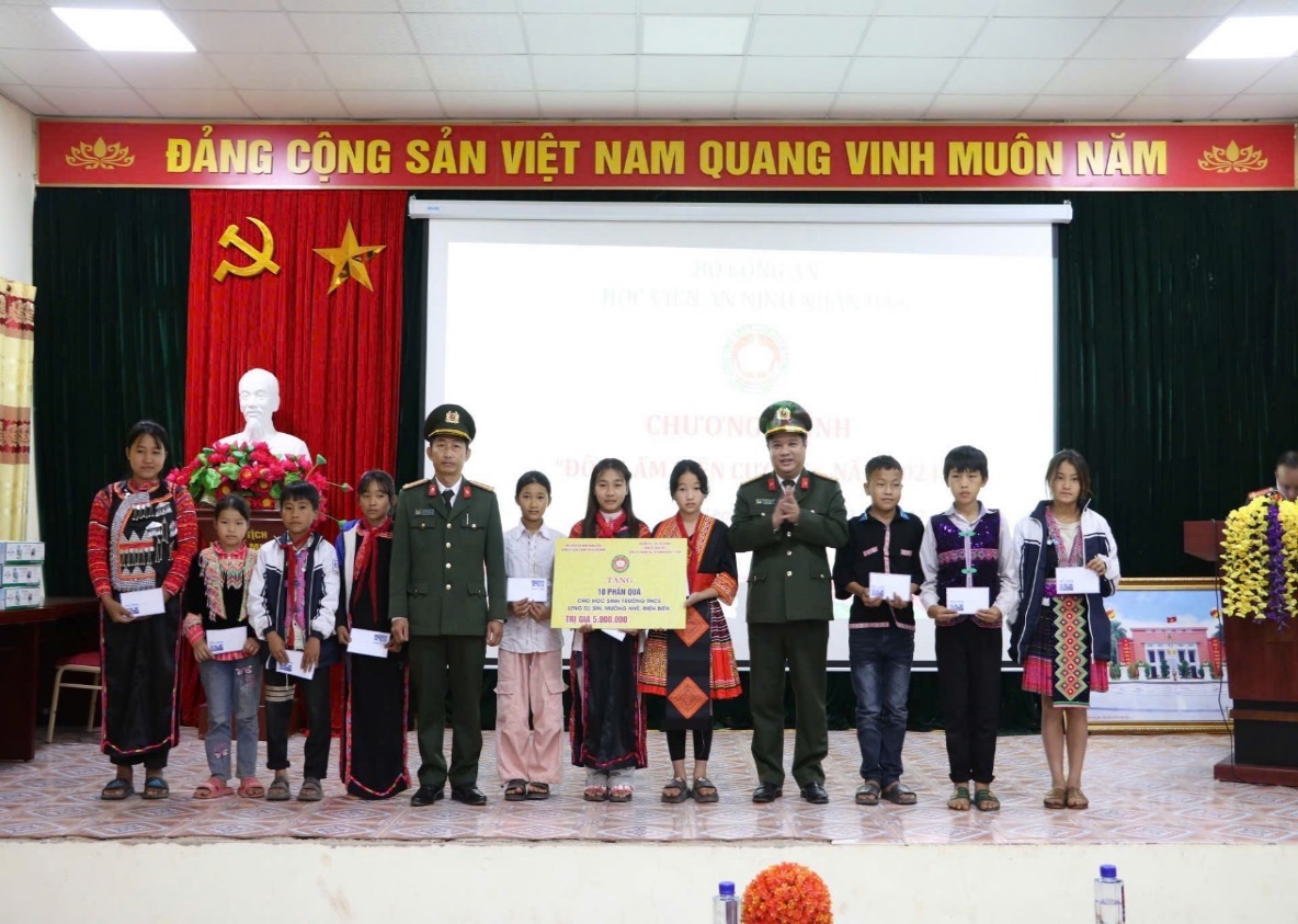 Với tinh thần tương thân tương ái, lan tỏa giá trị tốt đẹp về người chiến sĩ Công an nhân dân, được sự đồng ý của Đảng ủy, Ban Giám đốc Học viện An ninh nhân dân (ANND), từ ngày 12 đến ngày 14/12/2024 Đoàn công tác của Học viện ANND do đồng chí TS, Thượng tá Nguyễn Đức Hà - Trưởng khoa Lý luận chính trị và khoa học xã hội nhân văn (LLCT&KHXHNV) làm Trưởng đoàn cùng lãnh đạo, cán bộ Khoa đã tổ chức Chương trình thiện nguyện tặng quà cho các gia đình chính sách và học sinh có hoàn cảnh khó khăn tại xã Leng Su Sìn, huyện Mường Nhé, tỉnh Điện Biên; đồng thời, thăm hỏi, động viên cán bộ của Khoa được điều động, tăng cường về Công an xã Leng Su Sìn với chủ đề chương trình “Đông ấm Biên cương năm 2024”.