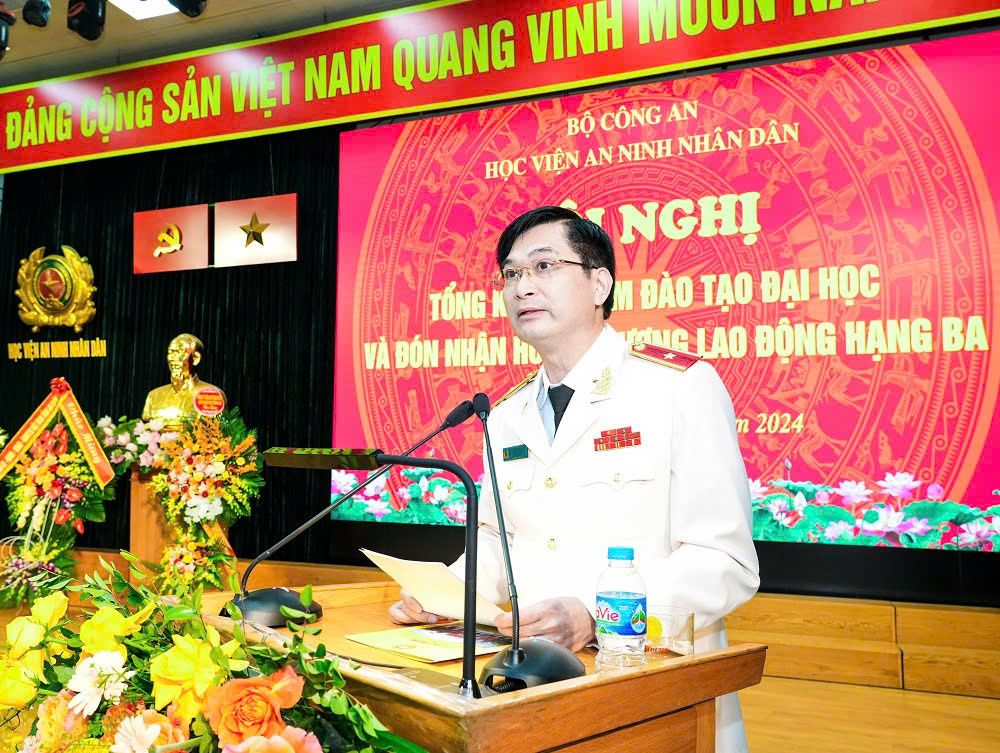 Ngày 20/12/2024, tại Hà Nội, Học viện An ninh nhân dân (ANND) tổ chức Hội nghị tổng kết 55 năm đào tạo đại học và đón nhận Huân chương Lao động hạng Ba. PGS.TS, Thượng tướng Trần Quốc Tỏ, Ủy viên Ban Chấp hành Trung ương Đảng, Phó Bí thư Đảng uỷ Công an Trung ương, Thứ trưởng Bộ Công an đến dự và phát biểu tại Hội nghị.