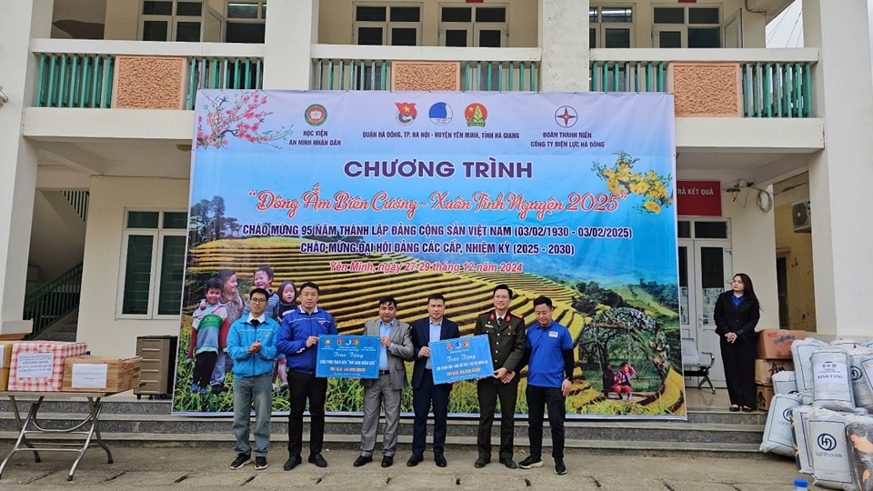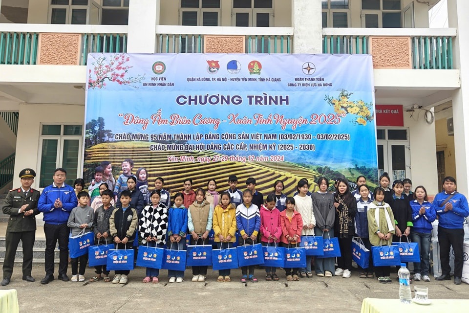 Hướng tới chào mừng kỷ niệm 95 năm ngày thành lập Đảng Cộng sản Việt Nam (03/02/1930 - 03/02/2025); chào mừng Đại hội Đảng các cấp nhiệm kỳ 2025 - 2030, được sự đồng ý của Đảng ủy, Ban Giám đốc Học viện, Đoàn Thanh niên Học viện An ninh nhân dân với hợp với Quận đoàn Hà Đông, Đoàn Thanh niên Công ty Điện lực Hà Đông tổ chức chương trình “Đông ấm biên cương - Xuân tình nguyện 2025” tại xã Bạch Đích, huyện Yên Minh, tỉnh Hà Giang.