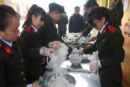 Đoàn công tác tổ chức nấu ăn trưa cho giáo viên, học sinh của trường
