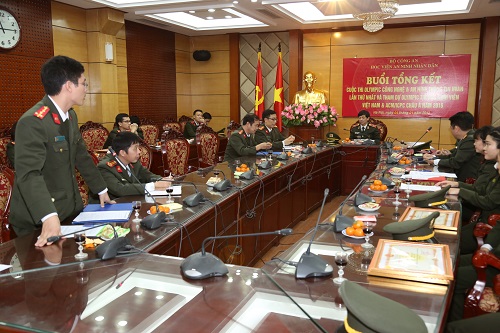 Tại buổi tổng kết, đồng chí Trung tá Sử Ngọc Anh, phụ trách Khoa Công nghệ và An ninh thông tin đã đọc bản báo cáo kết quả, những kinh nghiệm có được và một số đề xuất nhằm tạo điều kiện cho Khoa tiếp tục phát huy phong trào Olympic Tin học, góp phần vào phong trào học tập nghiên cứu khoa học chung của sinh viên toàn Học viện.
