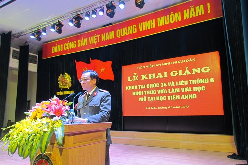 Ngày 06/01/2017, Học viện An ninh nhân dân tổ chức Lễ khai giảng lớp đào tạo đại học tại chức khóa 34 và liên thông khóa 6- Hình thức vừa làm vừa học mở tại Học viện