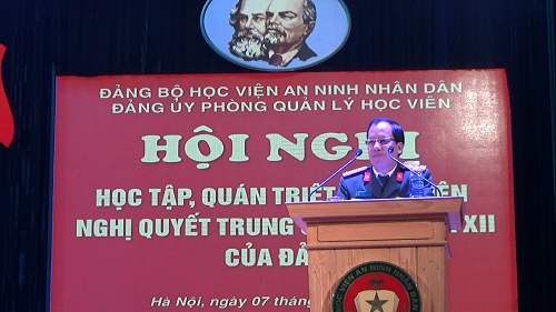 Đồng chí Đại tá Dương Minh Thuân - Bí thư Đảng ủy, Trưởng phòng Quản lý học viên chủ trì hội nghị. Tham dự hội nghị có các đồng chí trong Đảng ủy, lãnh đạo Phòng Quản lý học viên và toàn thể đảng viên khối học viên. Đồng chí Đại tá Nguyễn Hữu Hòa – Báo cáo viên cấp Bộ, Giám đốc Trung tâm Lưu trữ và thư viện đến dự và truyền đạt nội dung Nghị quyết.