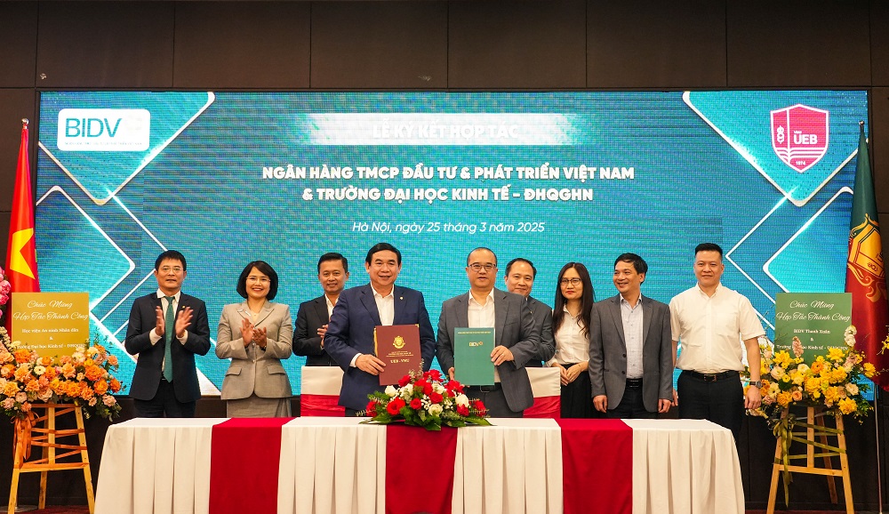 Ngày 25/3/2025, tại Trường Đại học Kinh tế - Đại học Quốc gia Hà Nội, Học viện An ninh nhân dân (ANND), Ngân hàng Thương mại cổ phần Đầu tư và Phát triển Việt Nam (BIDV) và Trường Đại học Kinh tế - Đại học Quốc gia Hà Nội tổ chức Lễ ký kết hợp tác giữa các đơn vị.