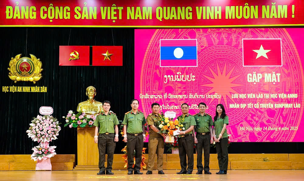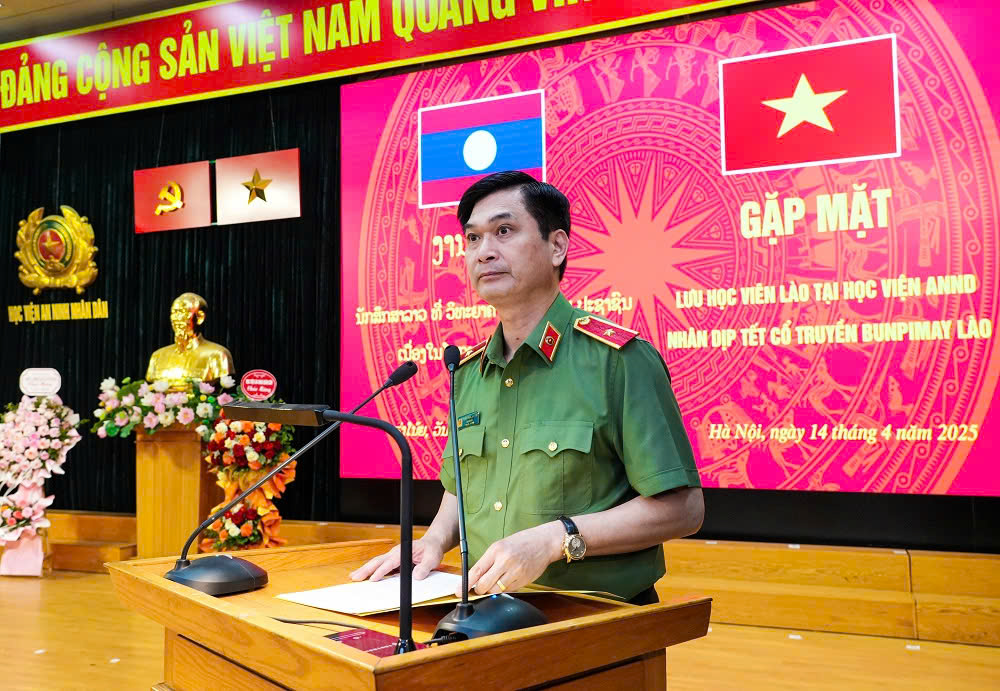 Ngày 14/4/2025, Học viện An ninh nhân dân (ANND) đã long trọng tổ chức buổi gặp mặt, chúc Tết lưu học viên Lào nhân dịp Tết cổ truyền Bunpimay. PGS.TS, Thiếu tướng Trịnh Ngọc Quyên - Giám đốc Học viện chủ trì buổi gặp mặt.