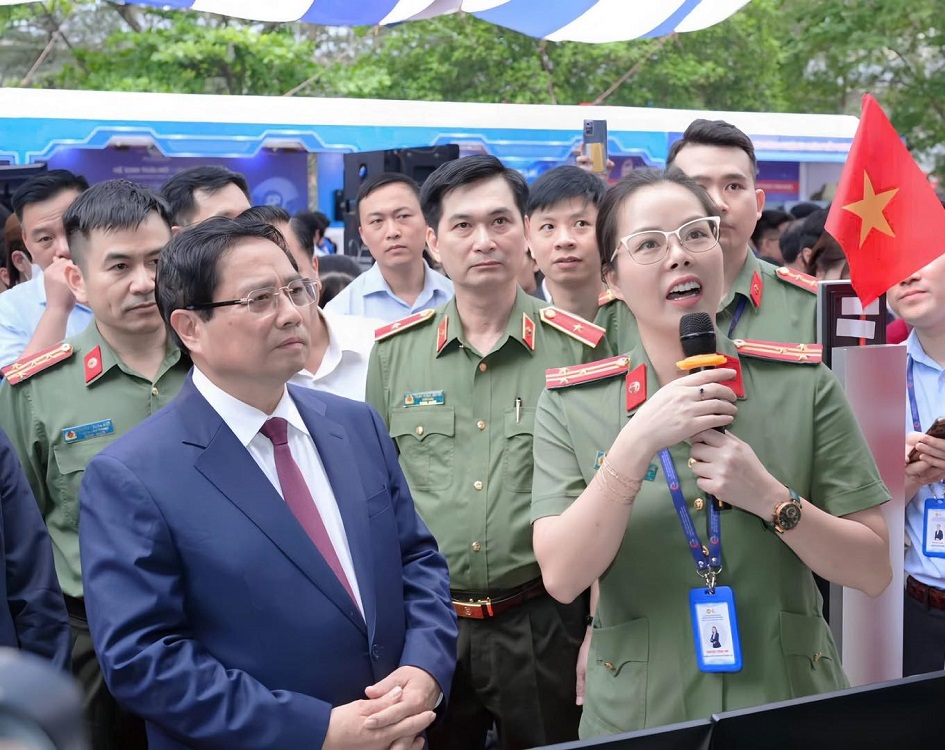 Thủ tưởng Phạm Minh Chính tham quan gian hàng của Học viện An ninh nhân dân.