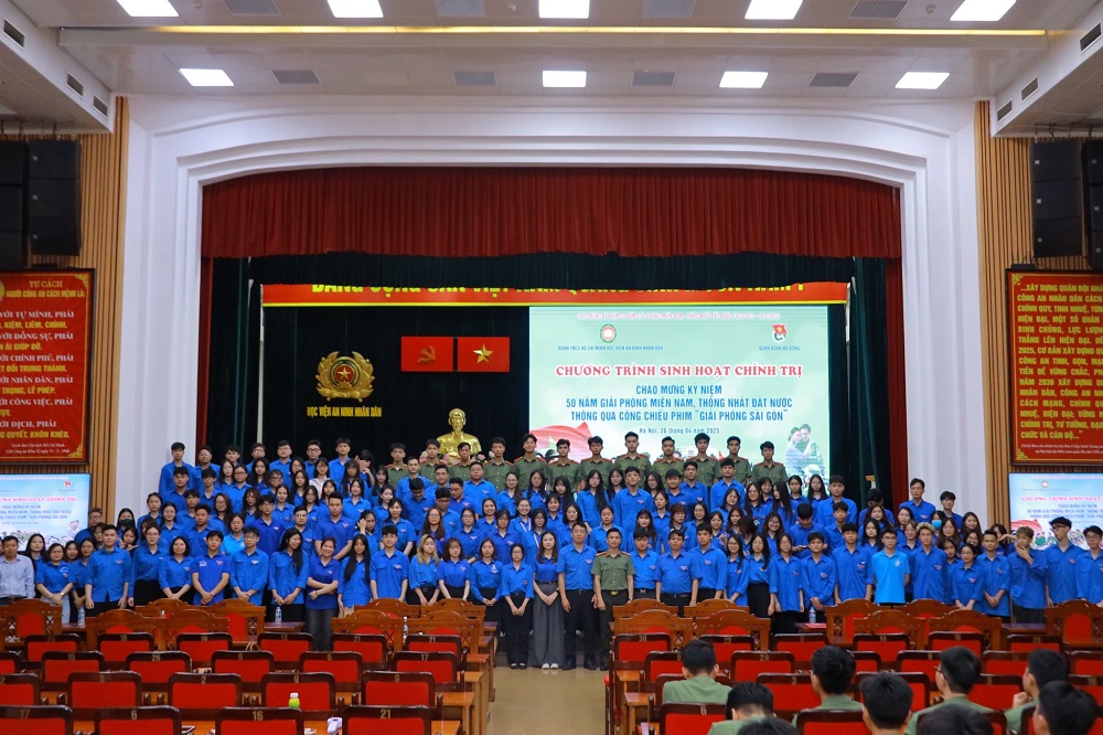 Hòa chung không khí hào hùng kỷ niệm 50 năm Ngày Giải phóng miền Nam, thống nhất đất nước (30/4/1975 - 30/4/2025), ngày 26/4/2025, Đoàn Thanh niên Học viện An ninh nhân dân (ANND) và Quận đoàn Hà Đông đã phối hợp tổ chức chương trình sinh hoạt chính trị cho đoàn viên thanh niên thông qua chiếu bộ phim “Giải phóng Sài Gòn”.