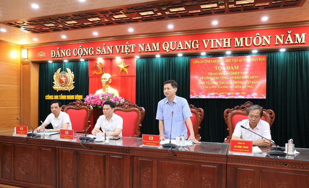 Ngày 26/4/2025, Học viện An ninh nhân dân (ANND) phối hợp với Công an tỉnh Nam Định đã tổ chức Tọa đàm trao đổi nghiệp vụ với chủ đề “Công tác bảo đảm an ninh, trật tự phục vụ giải phóng mặt bằng tại khu vực Cồn Xanh, huyện Nghĩa Hưng, tỉnh Nam Định”.