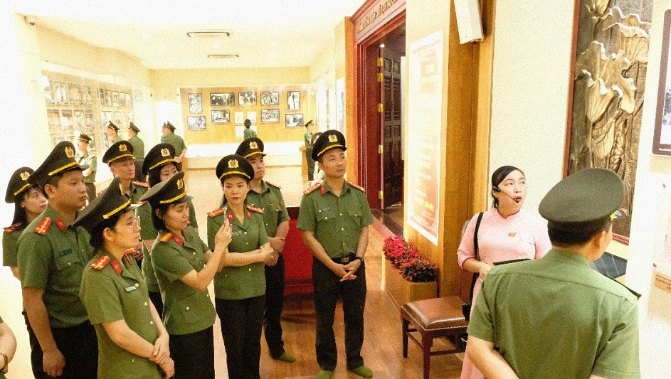 Tại Khu lưu niệm Sáu điều Bác Hồ dạy CAND, Đoàn công tác đã tham quan Nhà truyền thống, Khu tưởng niệm Chủ tịch Hồ Chí Minh và Nhà trưng bày lưu niệm Sáu điều Bác Hồ dạy CAND; ôn lại truyền thống vẻ vang của lực lượng CAND và nội dung Sáu điều Bác Hồ căn dặn.