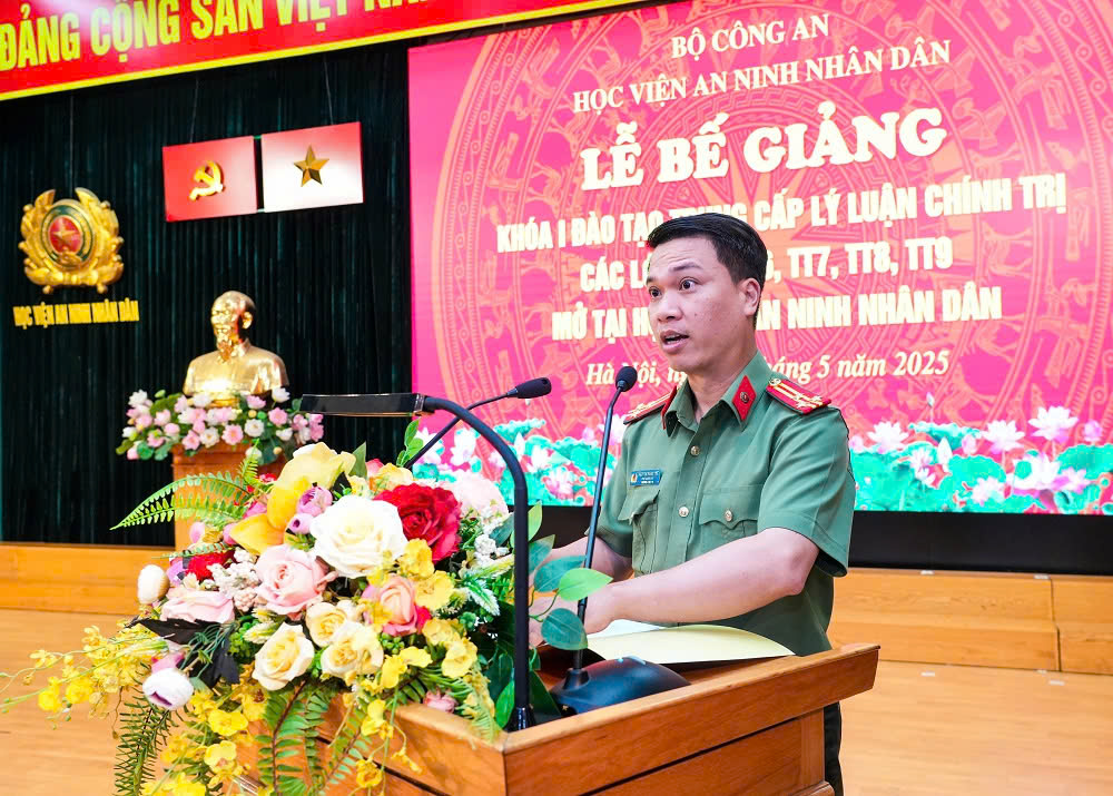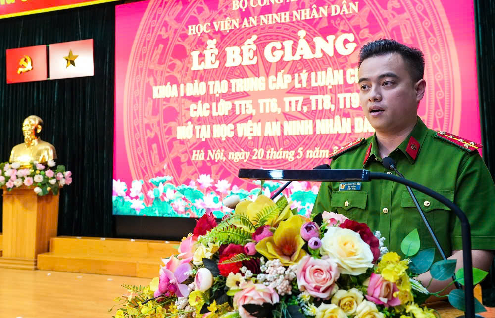 Trong diễn văn Bế giảng, PGS.TS, Thượng tá Nguyễn Hồng Thái - Phó Giám đốc Học viện ANND khẳng định, sau thời gian học tập, rèn luyện, học viên Khoá 1 đào tạo Trung cấp lý luận chính trị đã hoàn thành chương trình đào tạo tại Học viện. Kết thúc khoá học có 100% học viên đã hoàn thành chương trình học tập và được xếp loại bằng Khá, Giỏi.