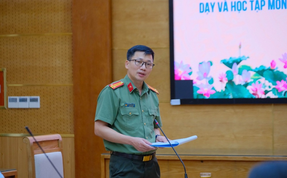 Phát biểu định hướng tại buổi Tọa đàm, TS, Trung tá Nguyễn Văn Long - Phó Trưởng khoa Lý luận chính trị và Khoa học xã hội nhân văn khẳng định vai trò và ý nghĩa của tác phẩm đổi với việc giảng dạy và học tập học phần Chủ nghĩa xã hội khoa học trong giai đoạn hiện nay; đưa ra những vấn đề liên quan tới công tác giáo dục, đào tạo tại Học viện ANND để các đại biểu cùng tham luận, trao đổi, đóng góp ý kiến.