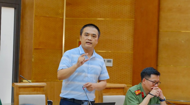 TS, Trung tá Nguyễn Văn Long - Phó Trưởng khoa Lý luận chính trị và Khoa học xã hội nhân văn phát biểu định hướng nội dung buổi Tọa đàm.