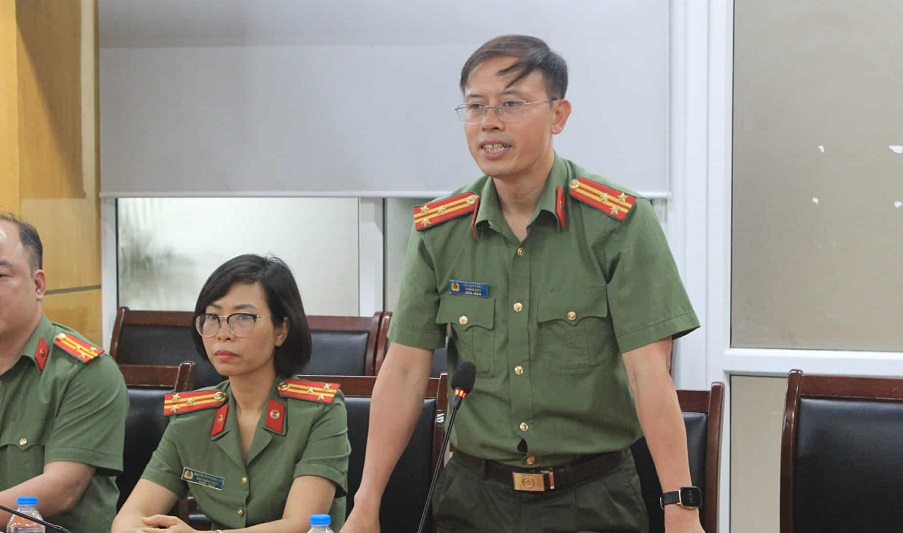 PGS.TS, Thượng tá Hồ Anh Tuấn - Trưởng Khoa An ninh chính trị nội bộ phát biểu tại chương trình thiện nguyện.