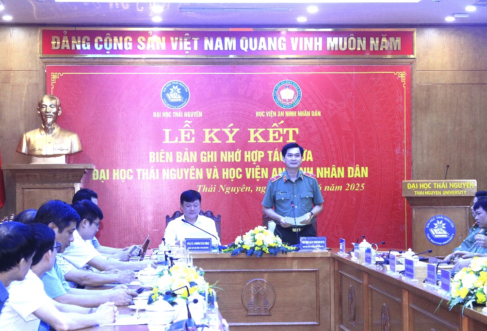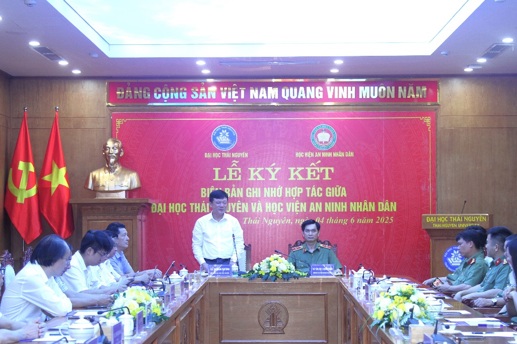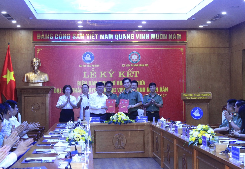 Nhằm tăng cường mối quan hệ hợp tác, chia sẻ nguồn lực và phát huy thế mạnh của mỗi bên trong công tác đào tạo, nghiên cứu khoa học và chuyển giao công nghệ, ngày 04/6/2025, tại Đại học Thái Nguyên, Học viện An ninh nhân dân (ANND) và Đại học Thái Nguyên đã tổ chức lễ ký kết bản ghi nhớ hợp tác toàn diện.