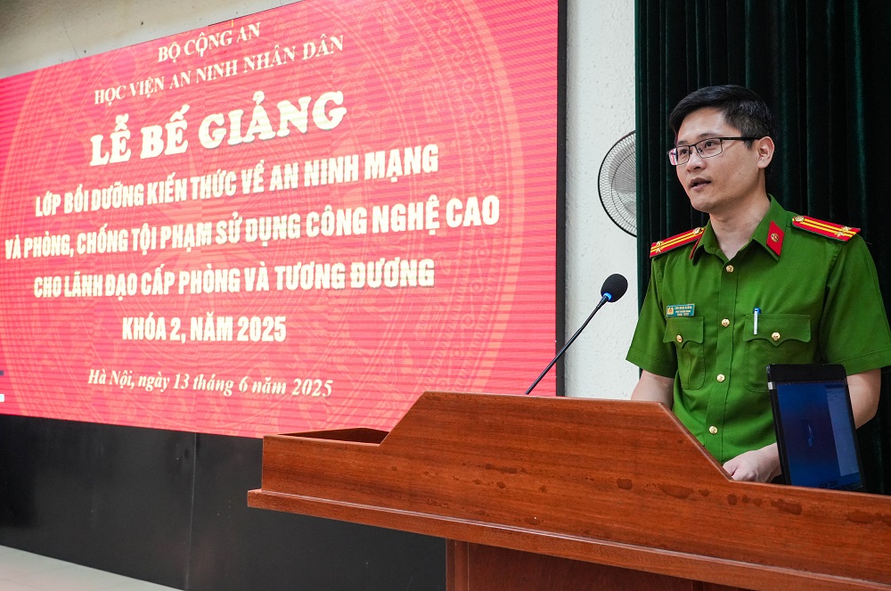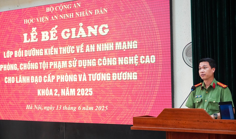 Ngày 13/6/2025, Học viện An ninh nhân dân (ANND) tổ chức Lễ Bế giảng lớp bồi dưỡng kiến thức về an ninh mạng và phòng, chống tội phạm sử dụng công nghệ cao cho lãnh đạo cấp phòng và tương đương Khoá 2 năm 2025.