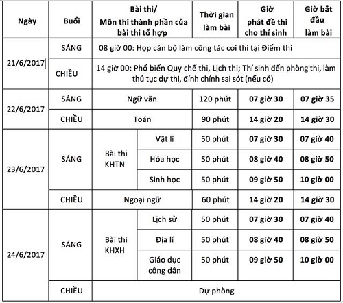 Lịch thi kỳ thi THPT quốc gia 2017 như sau: