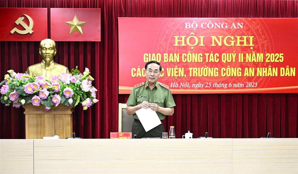 Phát biểu tại Hội nghị, Thứ trưởng Trần Quốc Tỏ ghi nhận, biểu dương những kết quả mà các học viện, trường CAND và các đơn vị chức năng trực thuộc Bộ đã đạt được trong Quý II/2025.