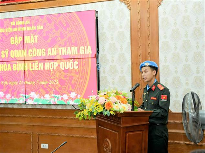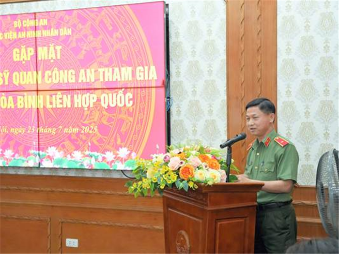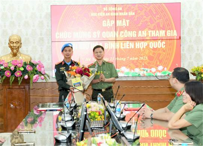 Ngày 23/7/2025, tại Hà Nội, Học viện An ninh nhân dân (ANND) đã long trọng tổ chức Lễ thông báo Quyết định của Chủ tịch nước và chúc mừng Đại úy Bùi Mạnh Tiến - cán bộ Phòng Quản lý nghiên cứu khoa học tham gia thực hiện nhiệm vụ gìn giữ hòa bình Liên hợp quốc tại Phái bộ MINUSCA, Cộng hòa Trung Phi năm 2025. PGS.TS, Thiếu tướng Trần Anh Vũ, Phó Giám đốc Học viện chủ trì buổi Lễ.