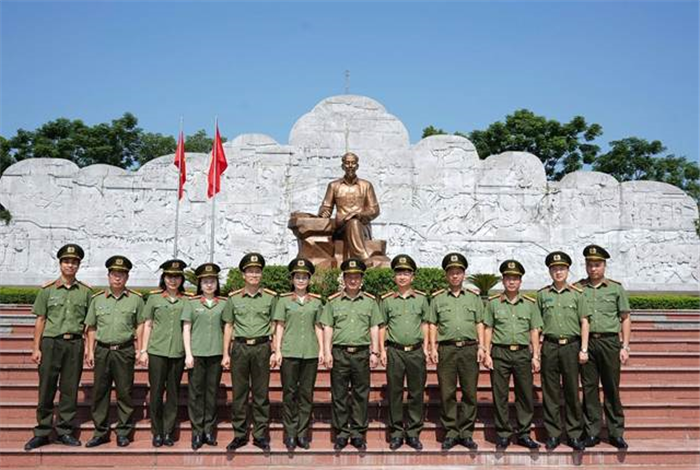 Đoàn công tác chụp ảnh lưu niệm tại Khu tưởng niện Sáu điều Bác Hồ dạy Công an nhân dân