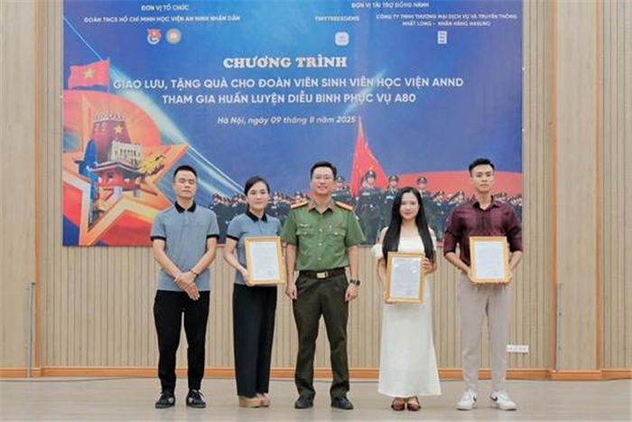 Ngày 09/8/2025, được sự đồng ý của Đảng ủy, Ban Giám đốc Học viện, Đoàn Thanh niên Học viện An ninh nhân dân (ANND) đã tổ chức chương trình giao lưu và tặng quà đầy ý nghĩa, tiếp thêm ngọn lửa nhiệt huyết cho cán bộ, học viên đang miệt mài, hăng say tập luyện diễu binh, diễu hành trong Lễ kỷ niệm 80 năm Cách mạng Tháng Tám và Quốc khánh 2/9.