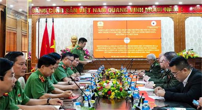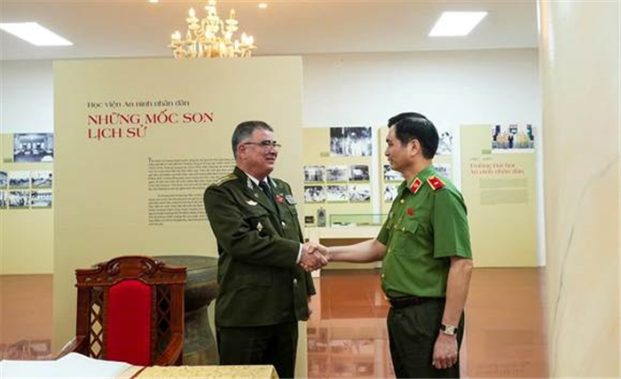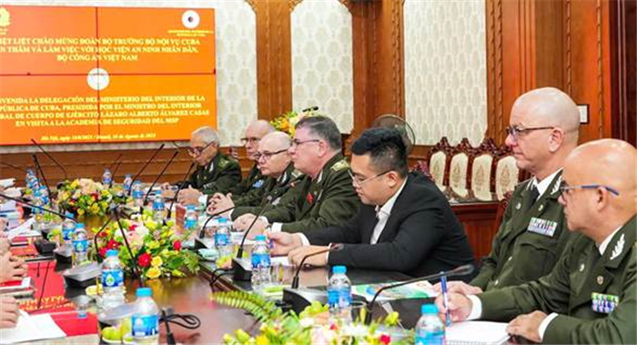 Phát biểu chào mừng, PGS.TS, Thiếu tướng Trịnh Ngọc Quyên - Giám đốc Học viện ANND đã bày tỏ niềm vinh dự và vui mừng khi được đón tiếp Đoàn; nhấn mạnh mối quan hệ đặc biệt, mẫu mực và thủy chung giữa Việt Nam và Cuba; đồng thời giới thiệu về Học viện với truyền thống 80 năm xây dựng và phát triển - là một trong những cơ sở giáo dục trọng điểm hàng đầu của Bộ Công an Việt Nam.