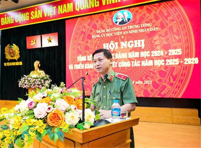 Phát biểu kết luận tại Hội nghị, thay mặt Đảng uỷ, Ban Giám đốc Học viện, PGS.TS, Thiếu tướng Trịnh Ngọc Quyên - Bí thư Đảng ủy, Giám đốc Học viện đã quán triệt những nội dung trọng tâm của Nghị quyết Đại hội Đảng bộ Học viện lần thứ 29 và triển khai kế hoạch thực hiện ý kiến chỉ đạo của đồng chí Bí thư Đảng ủy Công an Trung ương. Trong đó nhấn mạnh, năm học 2025 - 2026, Học viện sẽ tập trung vào việc cụ thể hóa Nghị quyết Đại hội, tiếp tục đổi mới, nâng cao chất lượng đào tạo, nghiên cứu khoa học và quản lý học viên; tiếp tục đẩy mạnh ứng dụng công nghệ, hoàn thiện các dự án cơ sở hạ tầng, nhằm tạo điều kiện tốt nhất cho công tác giảng dạy, học tập và sinh hoạt.