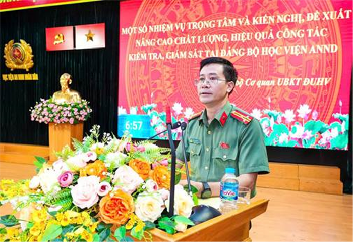 Báo cáo tổng kết công tác đảng năm học 2024 - 2025, PGS.TS, Đại tá Nguyễn Trung Kiên, Ủy viên Ban Thường vụ Đảng ủy, Chánh Văn phòng Học viện đã khẳng định, dưới sự lãnh đạo trực tiếp, toàn diện của Đảng ủy Công an Trung ương và Đảng ủy Học viện, năm học vừa qua, Học viện ANND đã đạt được nhiều kết quả nổi bật trên các mặt công tác, góp phần xây dựng Đảng bộ trong sạch, vững mạnh.