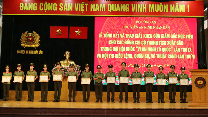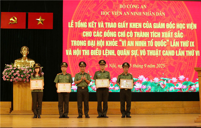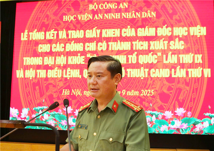 Ngày 25/09/2025, Học viện An ninh nhân dân đã tổ chức Lễ tổng kết và trao Giấy khen cho các đội tuyển và cá nhân đạt thành tích xuất sắc tại Đại hội khoẻ Vì An ninh Tổ quốc lần thứ IX và Hội thi Điều lệnh, Quân sự, Võ thuật Công an nhân dân lần thứ VI. TS, Thiếu tướng Nguyễn Văn Thiết - Phó Giám đốc Học viện chủ trì buổi Lễ. Tham dự buổi Lễ có đại diện lãnh đạo các đơn vị chức năng và toàn thể thành viên các đội tuyển.