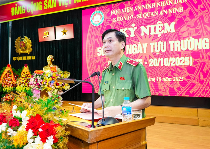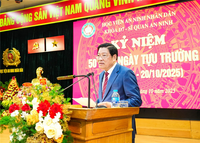 Ngày 19/10, tại Học viện An ninh nhân dân (ANND), Ban Liên lạc cựu học viên Khóa D7, đào tạo sỹ quan An ninh, Học viện ANND đã long trọng tổ chức Kỷ niệm 50 năm ngày tựu trường (20/10/1975-20/10/2025). Đại tướng Lương Tam Quang, Ủy viên Bộ Chính trị, Bộ trưởng Bộ Công an đã có lẵng hoa chúc mừng.