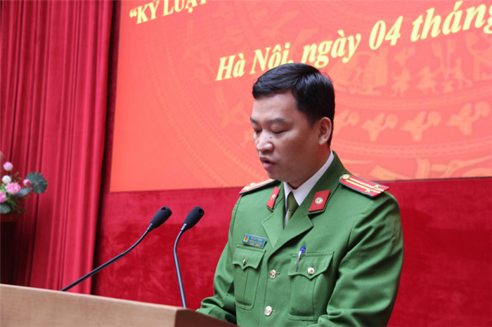 Đại diện Công an cơ sở phát biểu hưởng ứng tại Hội nghị.