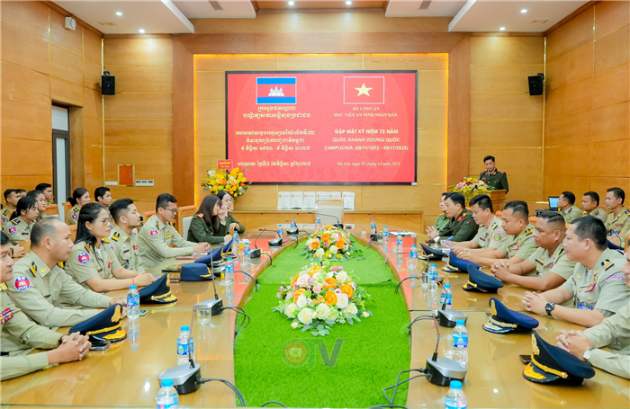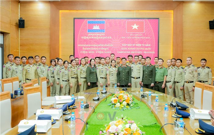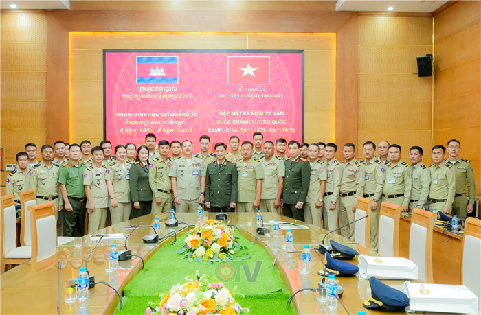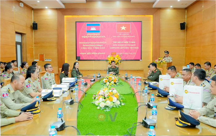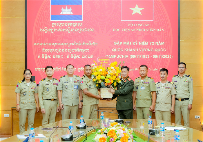 Nhân dịp kỷ niệm 72 năm Quốc khánh Vương quốc Campuchia (09/11/1953 - 09/11/2025), ngày 7/11, tại Hà Nội, Học viện An ninh nhân dân đã tổ chức Gặp mặt chúc mừng học viên thuộc Bộ Nội vụ Camuchia đang học tập, bồi dưỡng tại Học viện.