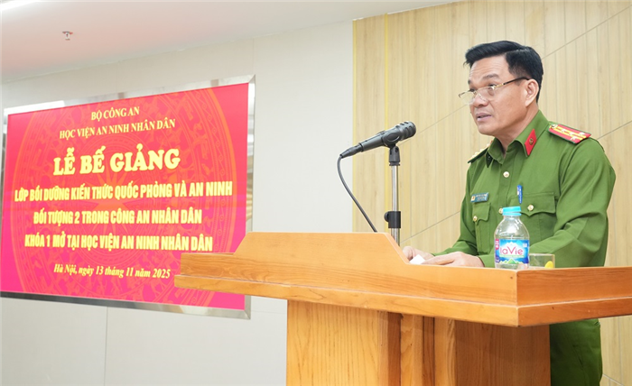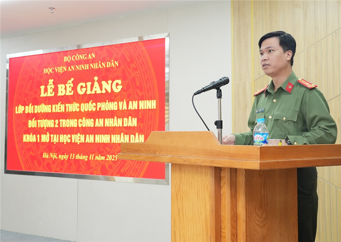 Ngày 13/11/2025, Học viện An ninh nhân dân (ANND) tổ chức Lễ bế giảng và trao chứng nhận cho các học viên lớp bồi dưỡng kiến thức quốc phòng và an ninh đối tượng 2 trong CAND, Khóa I mở tại Học viện.