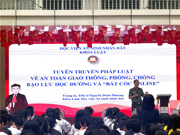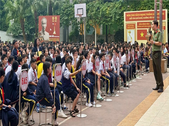 Ngày 17/11/2025, Học viện An ninh nhân dân phối hợp với Trường THCS Thanh Xuân tổ chức tuyên truyền pháp luật về an toàn giao thông, phòng chống bạo lực học đường và bắt cóc online cho hơn 1.300 học sinh.