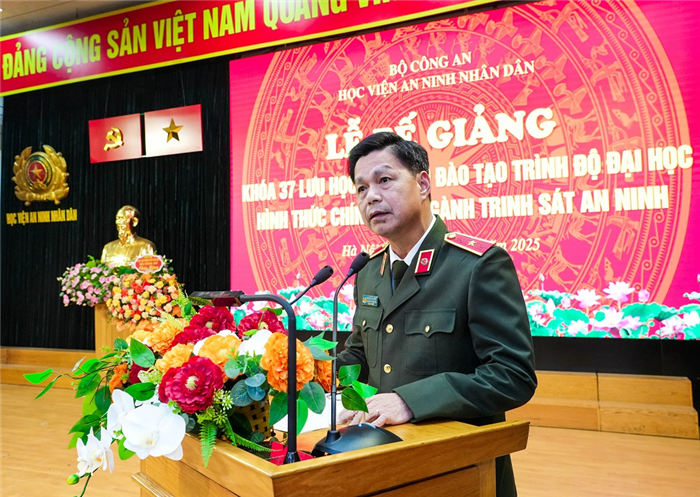 TS, Thiếu tướng Nguyễn Văn Thiết - Phó Giám đốc Học viện ANND phát biểu tại Lễ Bế giảng.