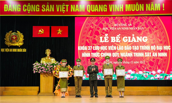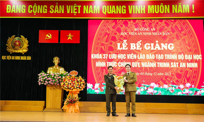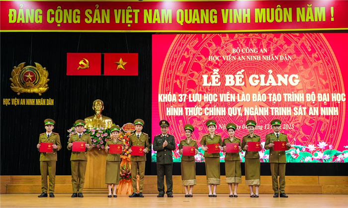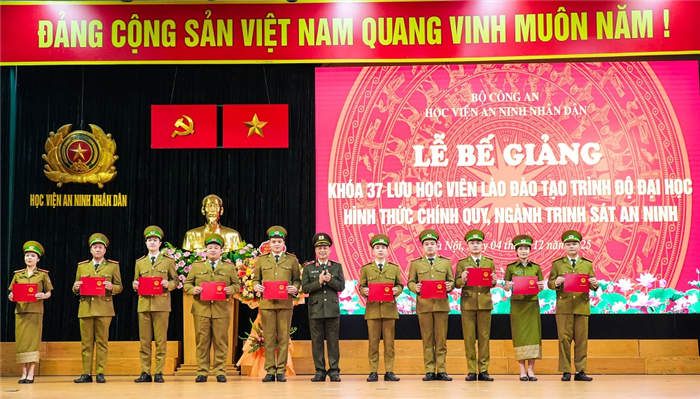 Ngày 04/12/2025, Học viện An ninh nhân dân (ANND) tổ chức Lễ Bế giảng Khóa 37 Lưu học viên Lào ngành Trinh sát an ninh.