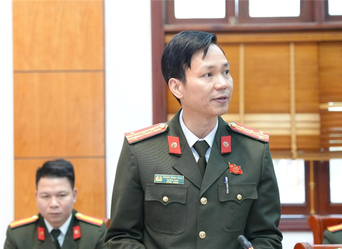 Thượng tá Lê Đức Dũng - Trưởng phòng An ninh nội địa, Công an tỉnh Nghệ An phát biểu tại Lễ ký kết.