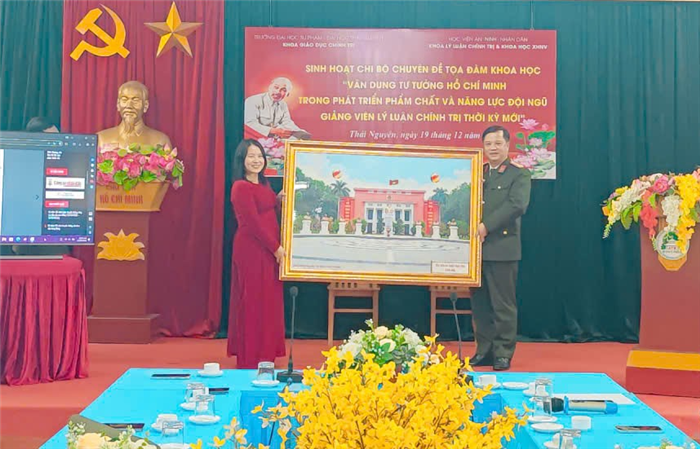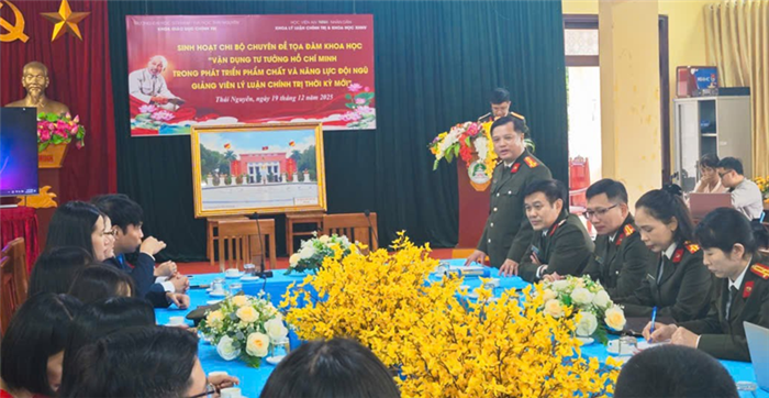Thực hiện chủ trương đổi mới, nâng cao chất lượng sinh hoạt chi bộ theo tinh thần Nghị quyết Đại hội XIII của Đảng và Chỉ thị số 05-CT/TW của Bộ Chính trị, ngày 19/12/2025, Chi bộ Khoa Lý luận chính trị và Khoa học xã hội nhân văn, Học viện An ninh nhân dân đã phối hợp với Chi bộ Khoa Giáo dục chính trị, Trường Đại học Sư phạm, Đại học Thái Nguyên tổ chức buổi sinh hoạt chuyên đề dưới hình thức Tọa đàm khoa học với chủ đề: “Vận dụng tư tưởng Hồ Chí Minh trong phát triển phẩm chất và năng lực đội ngũ giảng viên lý luận chính trị thời kỳ mới” tại Khu Di tích lịch sử ATK Định Hóa, tỉnhThái Nguyên. Tham dự buổi sinh hoạt chuyên đề có lãnh đạo, giảng viên, đảng viên hai chi bộ.
