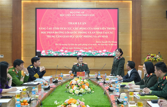 Ngày 30/12/2025, Học viện An ninh nhân dân (ANND) tổ chức Hội thảo khoa học “Đẩy mạnh đổi mới nội dung, phương pháp giáo dục quốc phòng, an ninh trong giai đoạn hiện nay”.