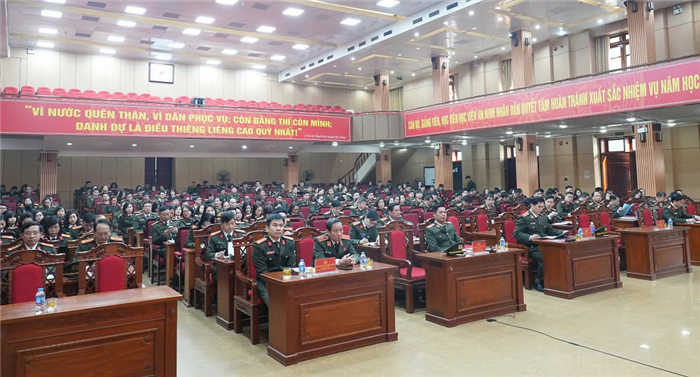 PGS.TS, Thiếu tướng Trịnh Ngọc Quyên - Bí thư Đảng ủy, Giám đốc Học viện chủ trì Hội nghị. Tham dự Hội nghị có các đồng chí trong Đảng ủy, Ban Giám đốc Học viện, sỹ quan cấp tướng, lãnh đạo các đơn vị cùng toàn thể cán bộ, giảng viên, công nhân viên Học viện.