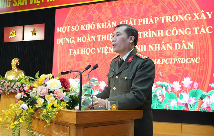PGS.TS, Thiếu tướng Trịnh Ngọc Quyên - Bí thư Đảng ủy, Giám đốc Học viện phát biểu tại Hội nghị.